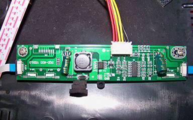 打开液晶显示器的外壳,就会发现几块电路板,其中有一块面积较大、设计比较紧凑的电路板就是液晶显示器的主板,通常称为“驱动板”。驱动板的作用是把外部主机送来的信号进行处理和控制,然后送给液晶面扳,显示出图像。图1所示是某液晶显示器的主板实物图。驱动板上比较重要的集成电路是主控芯片(Sealer芯片)和微控制器(MCU)。驱动板的输入接口通过连接线与计算机主板显卡主控芯片 相连,输出接口通过一条或者两条